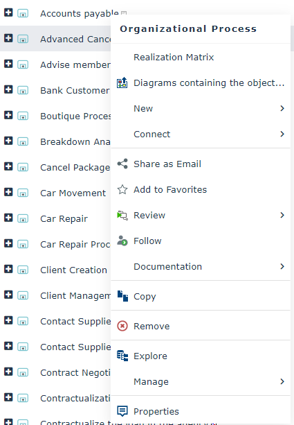 ![]() | Open or preview the diagram(s) describing the object, in the edit area, to the right of the tree | |