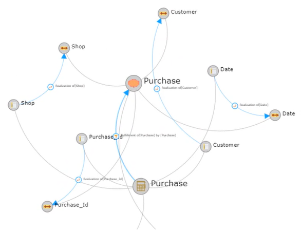 The example below shows the objects that implement the "Purchase" concept.