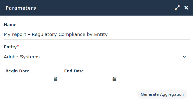 Entity | Average of control levels for regulatory frameworks connected to the entity. |