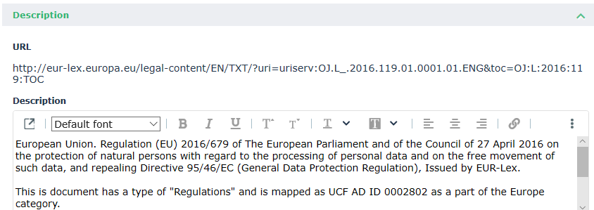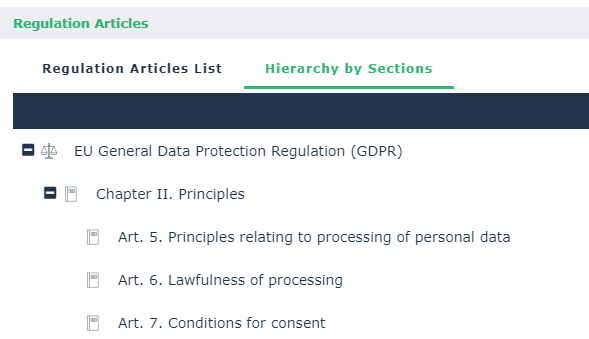 The regulation articles displayed are those that were declared as relevant in