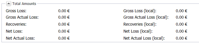 The Total Amounts section automatically calculates the sum of all incident-related financial elements (losses, gains, recoveries and provisions).