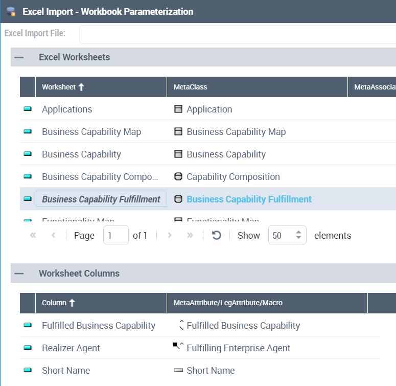 • the name of the business capability implemented in the Fulfilled Business Capability column.