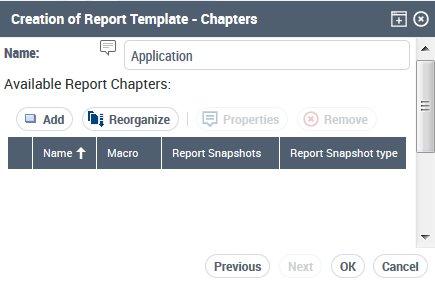 To build your report chapters, you can use an existing macro, provided that parameters are compatible.