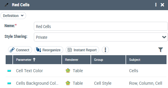 Style Sharing: by default the style is "Private". "Public" value enables to make the style available to all users when editing reports.