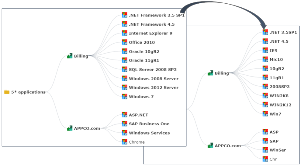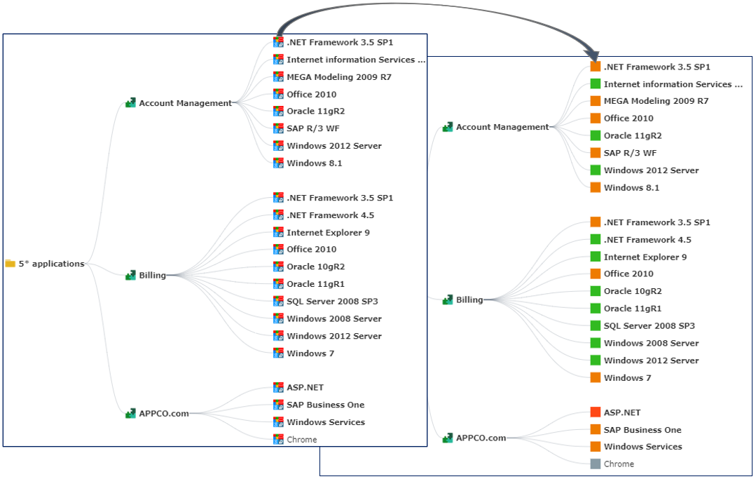 For example, for a Technology, instead of displaying the Technology icon, you can display its "Company Standard" value (represented by a color).