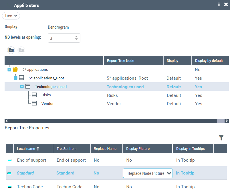 3. In the Report Tree Properties list, in the row of the property concerned, use the drop-down list to set Display Picture to "Replace Node Picture".