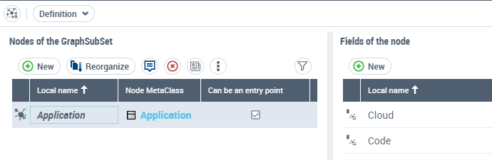 4. In the Nodes of the GraphSubSet pane, select the row of the node for which you want to define a field.