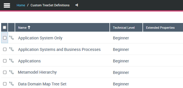 view lists the custom TreeSet Definitions only.