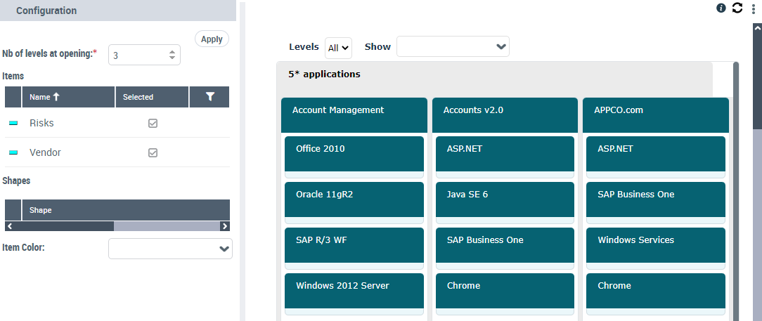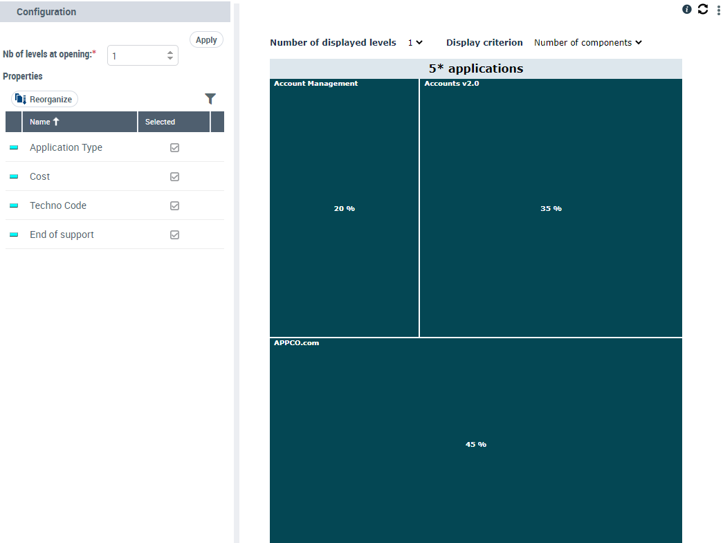 E.g.: this TreeMap is based on "Account Management", "Accounts V2.0", and "APPCO.COM" applications, which all have a ranking of 5 stars.
