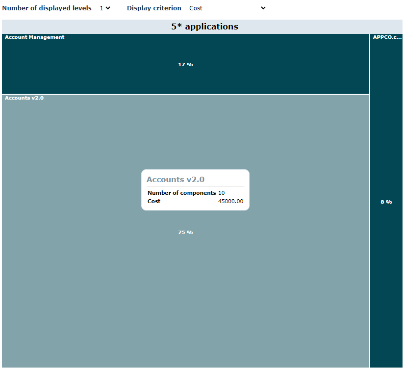 For example: display Applications according to their "Cost" ("Accounts V2.0": 45.000, "Account Management": 1.000, "APPCO.com": 5.000)