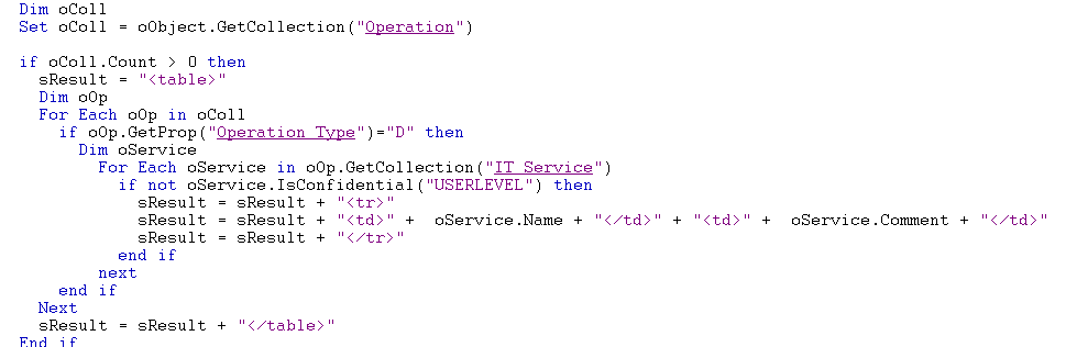 set res = root.getSelection("Select ~MrUiM9B5iyM0[Application] Where ~ltSTdNNHjqj0[Defined-Service] in (~TsUiT9B5iyQ0[IT Service] WHERE ~hqUiTCB5iK72[Operation].~mrUiaCB5iCB2[Organizational Process]='~W3qoNsjV91e6[Contract Negotiation]')")