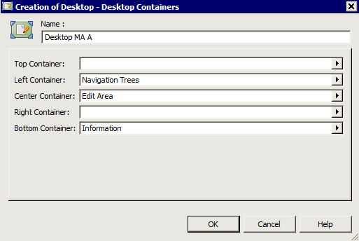 The "Edit Area" Center Container of Border Layout type of desktop ("Desktop MA A") is created and configured.