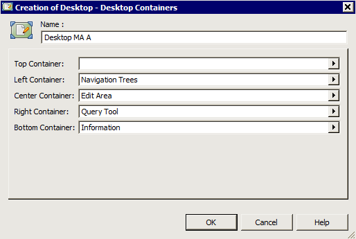 3. In the Creation of Desktop Container frame, select Container of Tool.