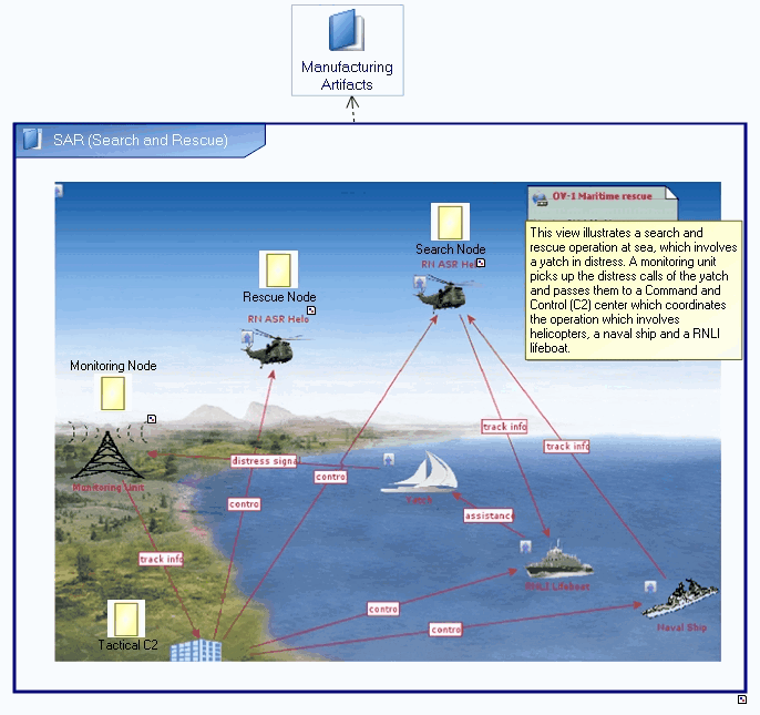 NOV-1 is used to depict the "big picture" of the operational context of the architecture. It describes capability and highlights the main operational nodes (see NOV-2 definition) and interesting or unique aspects of operations. It provides a description of the interactions between the subject architecture and its environment, and between the architecture and external systems. A textual description accompanying the graphic is crucial. Graphics alone are not sufficient for capturing the necessary architecture data.