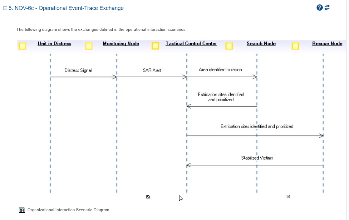 The NOV-6c operational event-trace specialization hierarchy chapter shows how the organizational processes of the architecture are specialized.