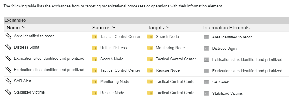 This chapter is used to show the exchanges that occur between organizational processes and operations in the architecture.