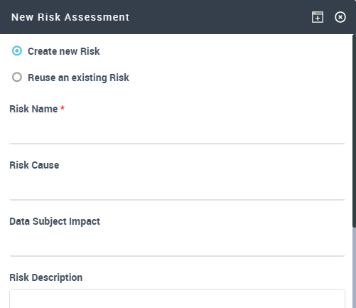 If risks have already been created when performing a DPIA on other processing activities, this page offers you the possibility to