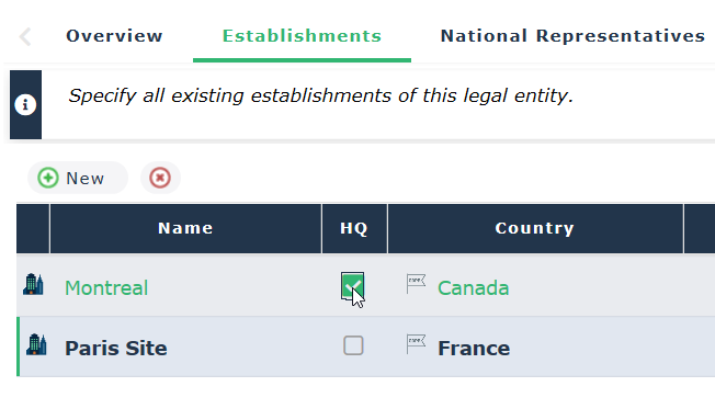 1. Open the property pages of the legal entity and select the Establishments tab.