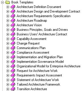 In HOPEX Suite for TOGAF, book templates are delivered with standard structure. A book, attached to a work package, can be enriched with new elements.