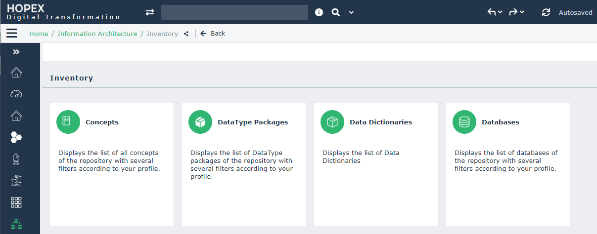 Accessing to data models with HOPEX Digital Transformation Desktop