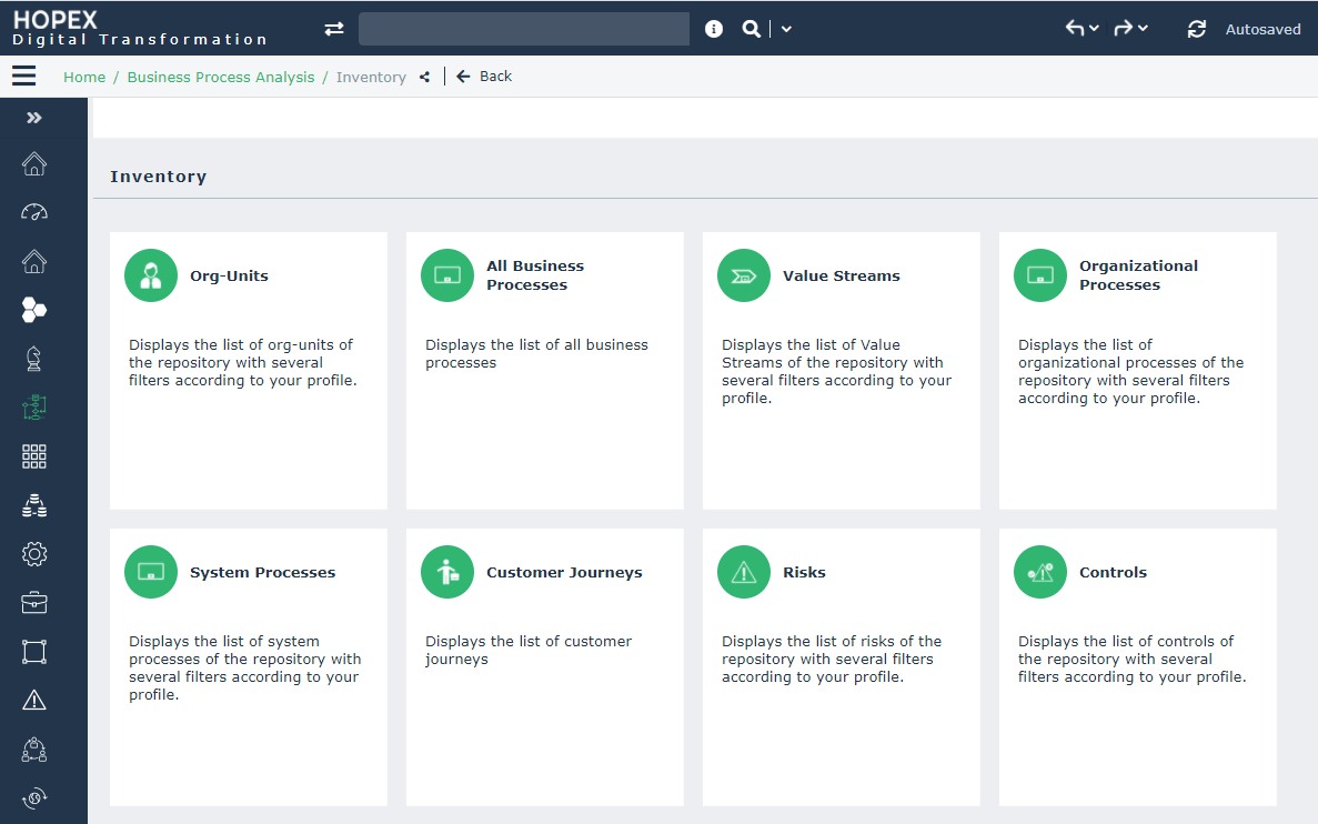 Accessing the organization elements with HOPEX Digital Transformation Desktop