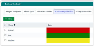 2. Create values and define colors to be displayed in the BIA matrix to illustrate business impact.