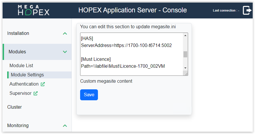 Default: “C:\Program Files\MEGA” for HAS Instance Manager