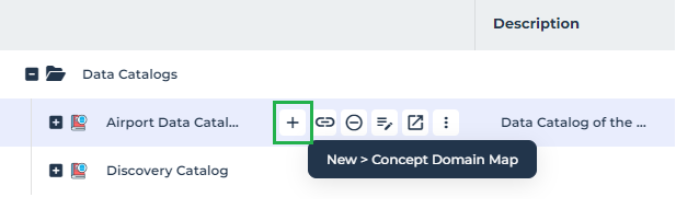 A Concept Domain Map organizes into domains the use of business data that is implemented by the meta dataset and metadata fields. Thus, the data catalog not only references physical and technical data sources but also provides a business-oriented entry point via this map.