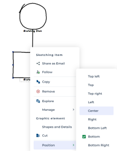 A sketching item shape depends on the initial item choice (rectangle or circle, for example) and on a choice proposed in the View and Details contextual menu of the item.