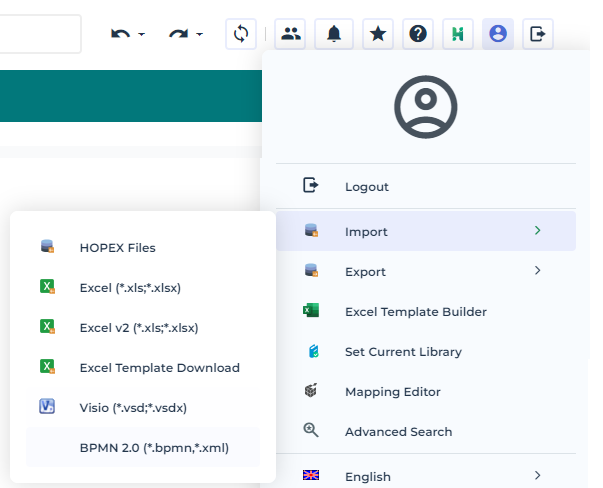 1. In HOPEX, select Main Menu > Import > BPMN 2.0 (*.bpmn, *.xml).