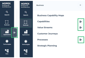 In certain Solutions, the cards show buttons when hovering the cursor. These buttons give access to elements related to the object of the card. These elements are presented as a tree or a list.