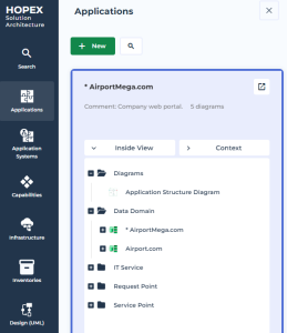 Example of an unfolded tree in the card of an application (HOPEX Solution Architecture desktop).