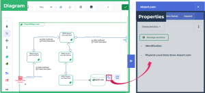 In a diagram, you can display an object properties in parallel to a diagram and/or in a new tab.