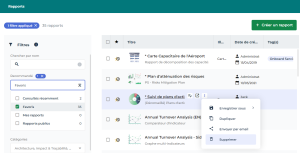 To keep the results of a report embedded in an object, you can save it. It is then accessible in the report search via the filter My reports.