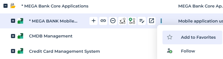 E.g.: the contextual menu of an application in a tree, with the EA Functional Administrator profile.