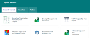 Quick access contains shortcuts facilitating your work in HOPEX.
