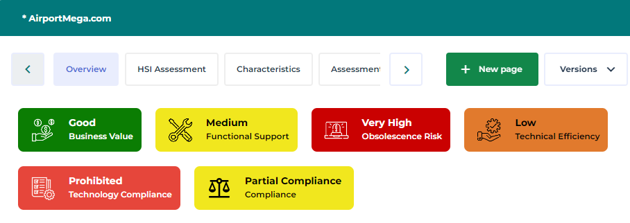 • its Obsolescence Risk corresponds to the highest risk of the technologies linked to it. If an application is linked to three technologies with “low”, “high” and “very high” risks, the application risk takes on the maximum value, i.e. “very high”.