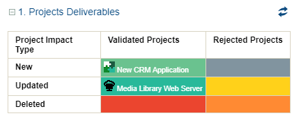 In the example below, two deliverables are part of the projects that were accepted in the scenario; a new CRM application and a server update.