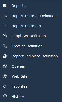 From the Report Studio navigation menu you can especially access, create and customize the Report Studio related definitions: