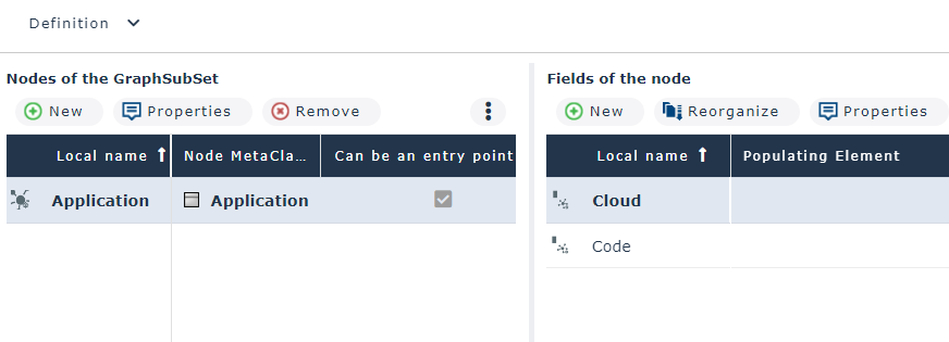 4. In the Nodes of the GraphSubSet pane, select the row of the node for which you want to define a field.