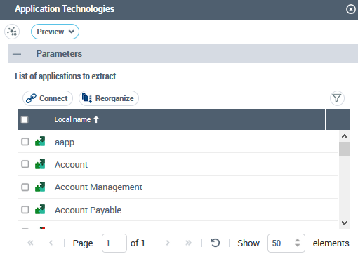 For example, enter "acco": "Account", "Account Link" and "Account Management" applications and "Accounting Technology" are highlighted (all of the other nodes are grayed out)