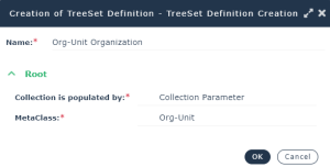- Populating: "Org-Unit Organisation_root", i.e. this Collection parameter populates the root node of the "Org-Unit Organization" TreeSet Definition.