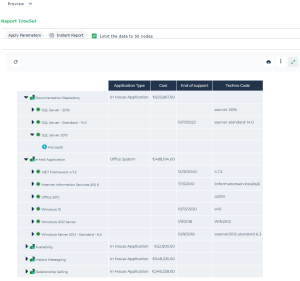 Once a Report Template is created from a TreeSet Definition, any user of a Solution can use it to query HOPEX repository and create tree reports.