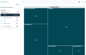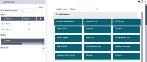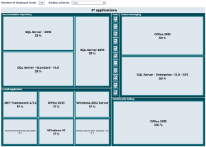 E.g.: this Breakdown map is based on "Account Management", "Accounts V2.0", and "APPCO.COM" applications, which all have a ranking of 5 stars. For each of them, its Technologies are displayed.