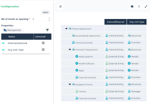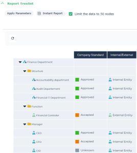 Ex.: this TreeSet is based on the Finance Department Org-Unit and displays for each Org-Unit child its Company Standard and Internal/External values.