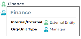 Example: hover the cursor over "Marketing Departement", its "Internal/External" and "Org-Unit Type" values are displayed in a pop-up window.