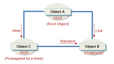 "DEEP" behavior: the opposite object is placed in the set with "DEEP" behavior and propagation continues on this object.