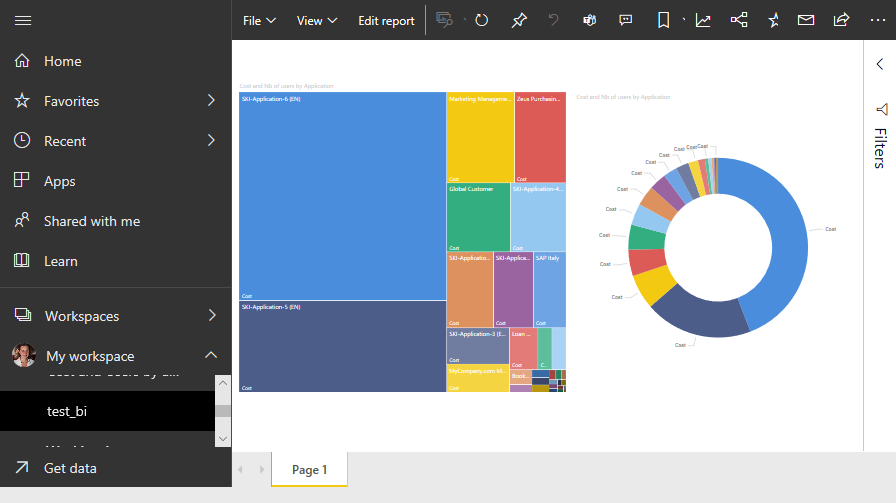 3) In Power BI (powerbi.com), expand My workspace pane, and open the report.