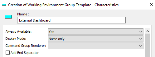 3) In the Working Environment Template folder, right-click the Working Environment Template to which you want to add a navigation pane and select New > Working Environment Group Template.