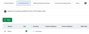 When you create several establishments, you need to define which of them represents the headquarters.